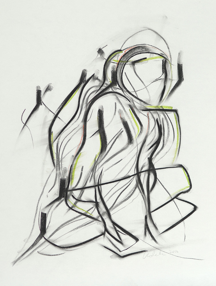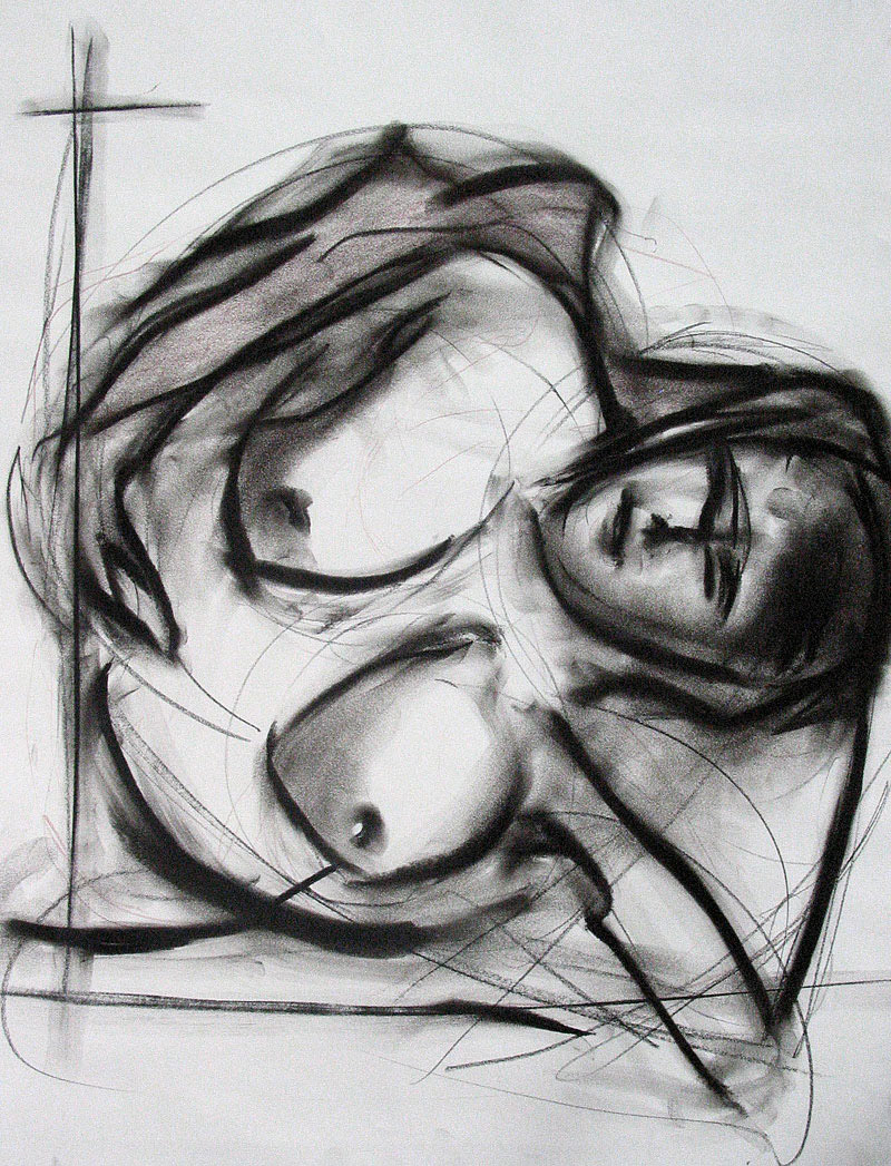 charcoal and pastel on paper, 24 by 18 inches, 2010